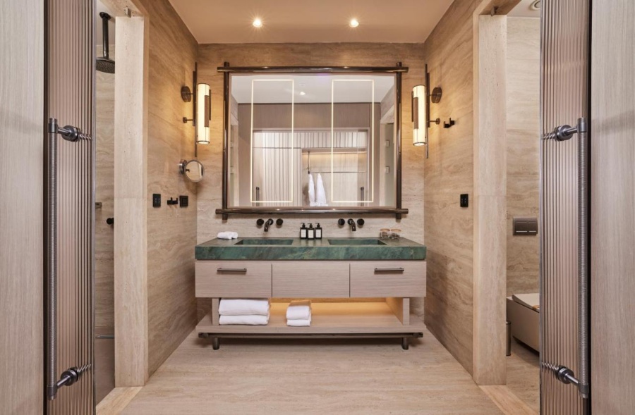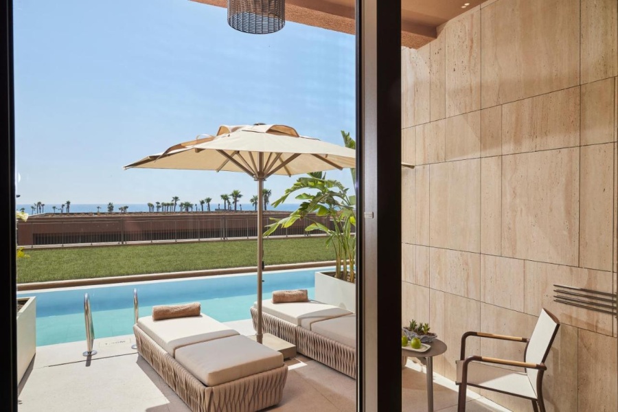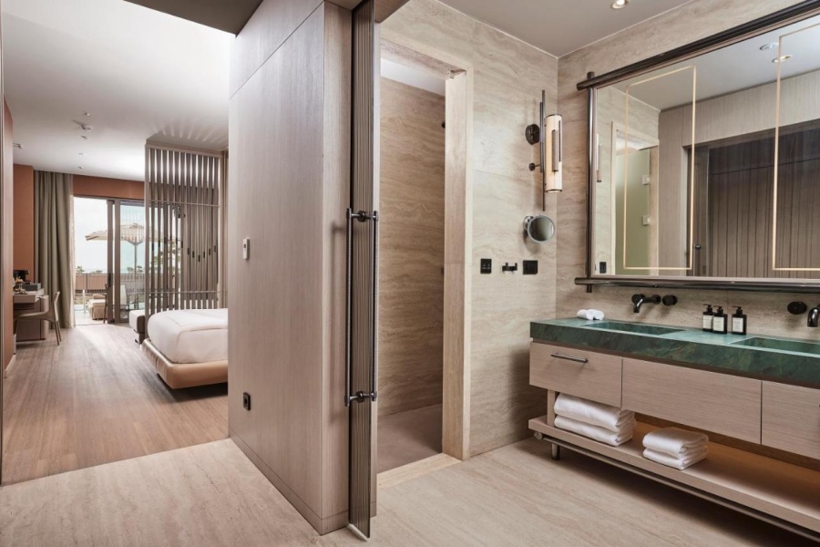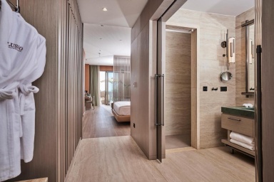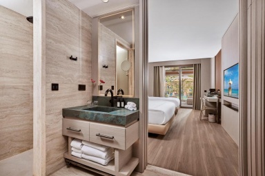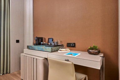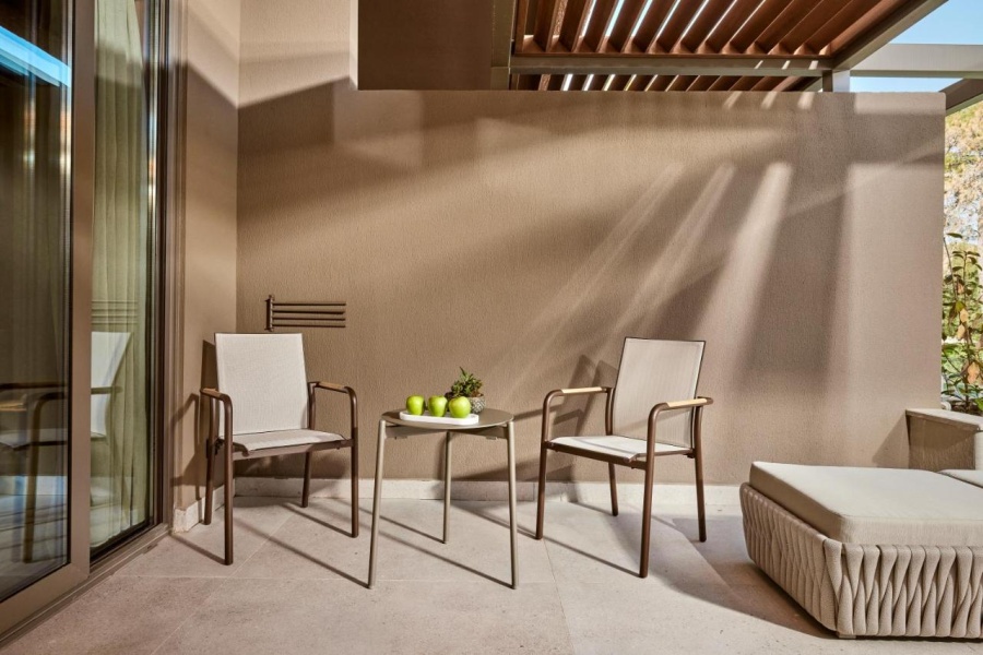 Номер уютный, со всем необходимым, чайник, капсульная кофемашина, бесплатная вода в номере в огромном количестве, банные принадлежности фирмы Amouage, утюг с гладильной доской.Большая красивая территория, внимательное обслуживание на пляже.